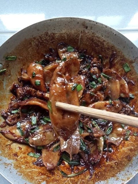 Khách mua về rửa sơ, xào khô trong chảo với lửa nhỏ cho khô ráo hoặc nướng sơ cho thơm, sau đó đem rim hoặc kho gừng (có thể nêm xíu nước mắm cho dậy mùi thơm và đậm đà hơn).